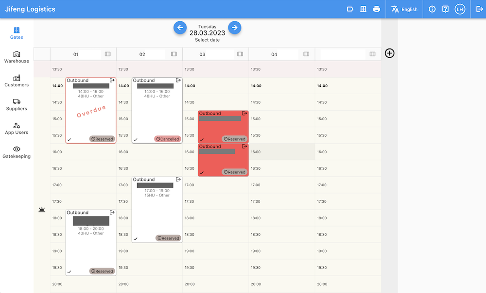 A complete solution for planning and controlling logistics processes for gates, loading zones, and goods flows within the warehouse.